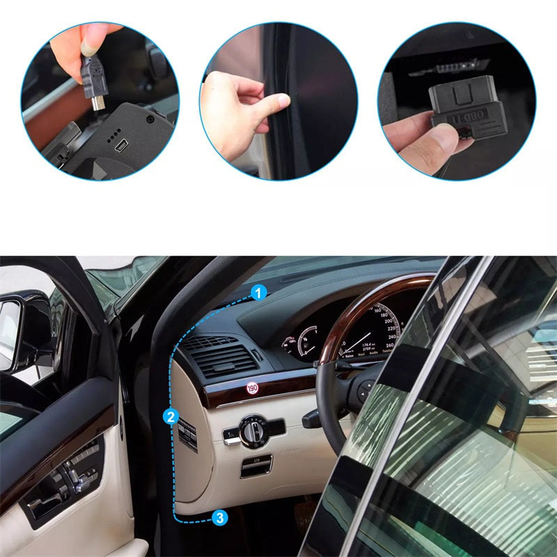 يُثبت بسهولة في منفذ OBD2 ويبدأ العمل فورًا دون أدوات أو إعدادات معقدة.